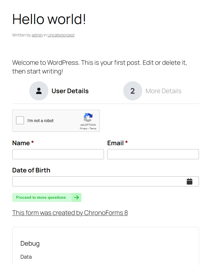 - When Recaptcha is removed, the form works when previewed from the form in admin. But when the form is visited from a draft or published page, the email is not sent, data not collected, and the user lands on a “Page not found” instead of the message page. Tried using another theme, but no go.