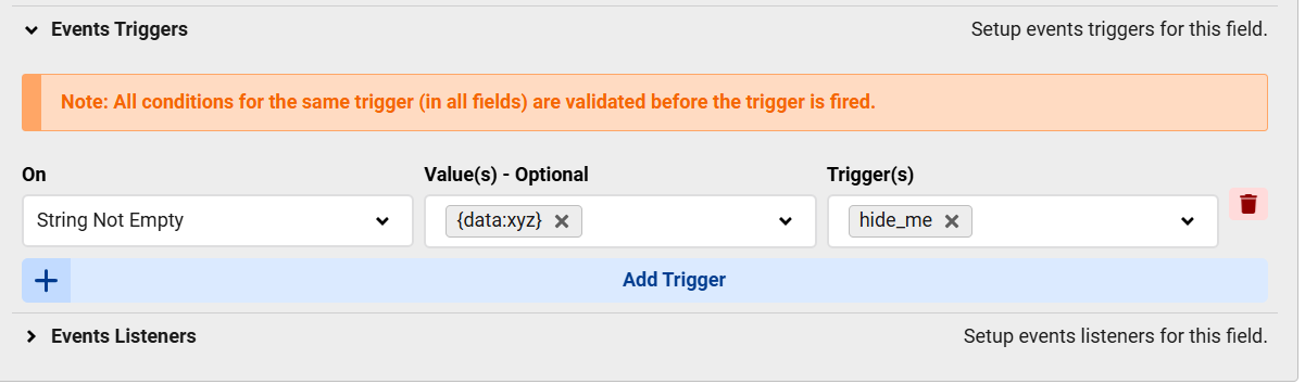 in this example, when there is a data parameter named "xyz" present and it's value is not empty then the trigger "hide_me" will be fired which can hide the field