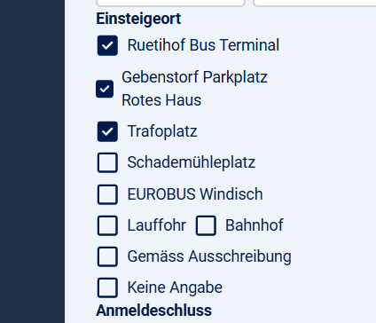 From my understanding the setting should on the frontside like a default checked box "keine" and the list of the selectable options as listed in the setting.however, with such a selection: